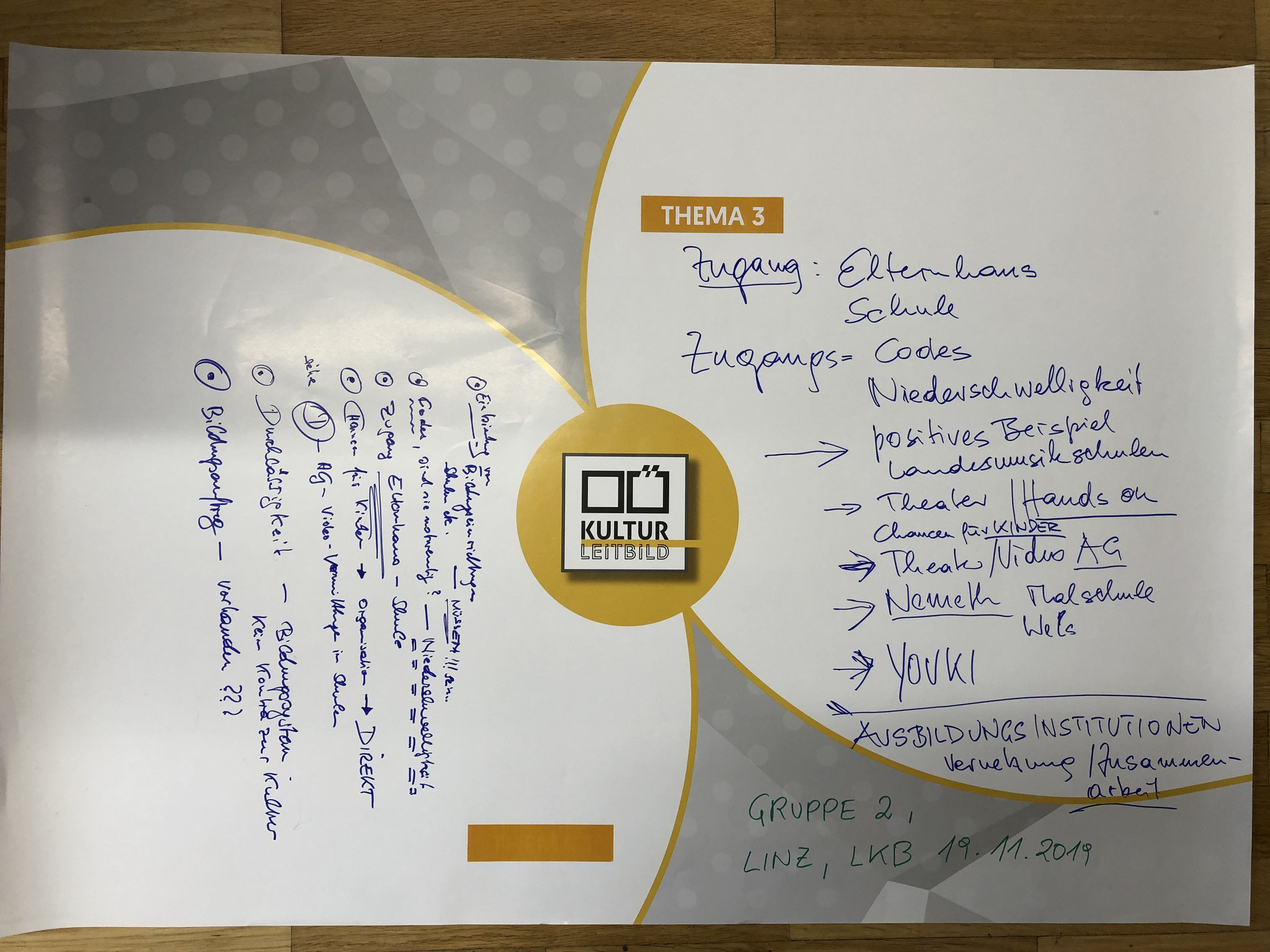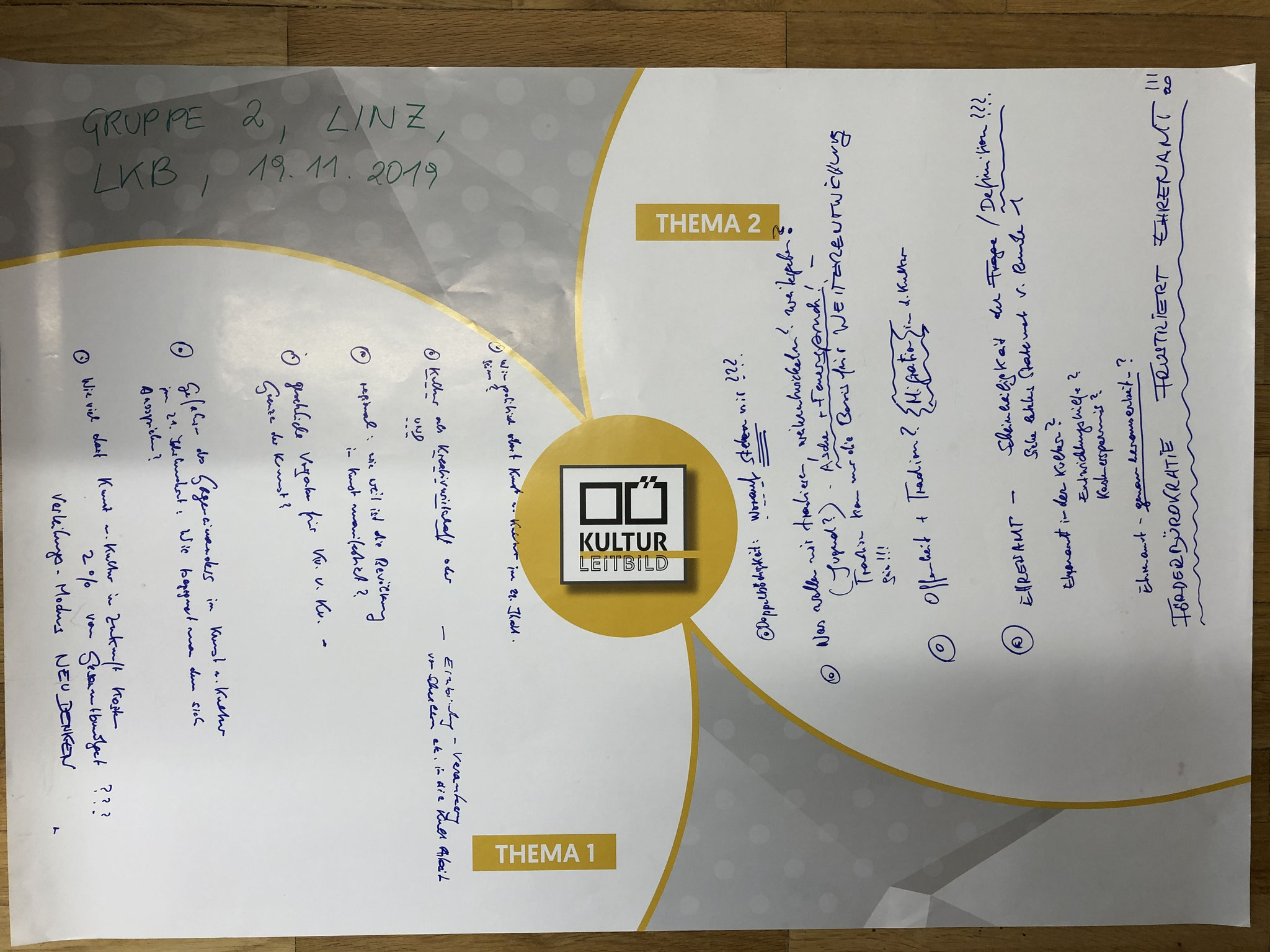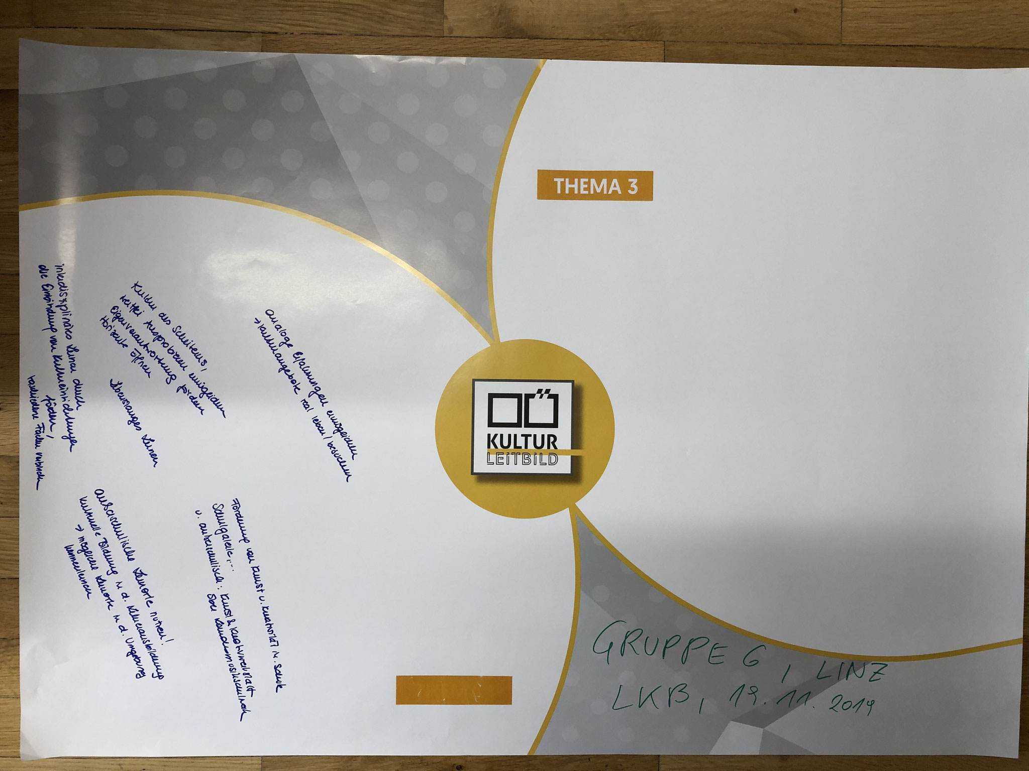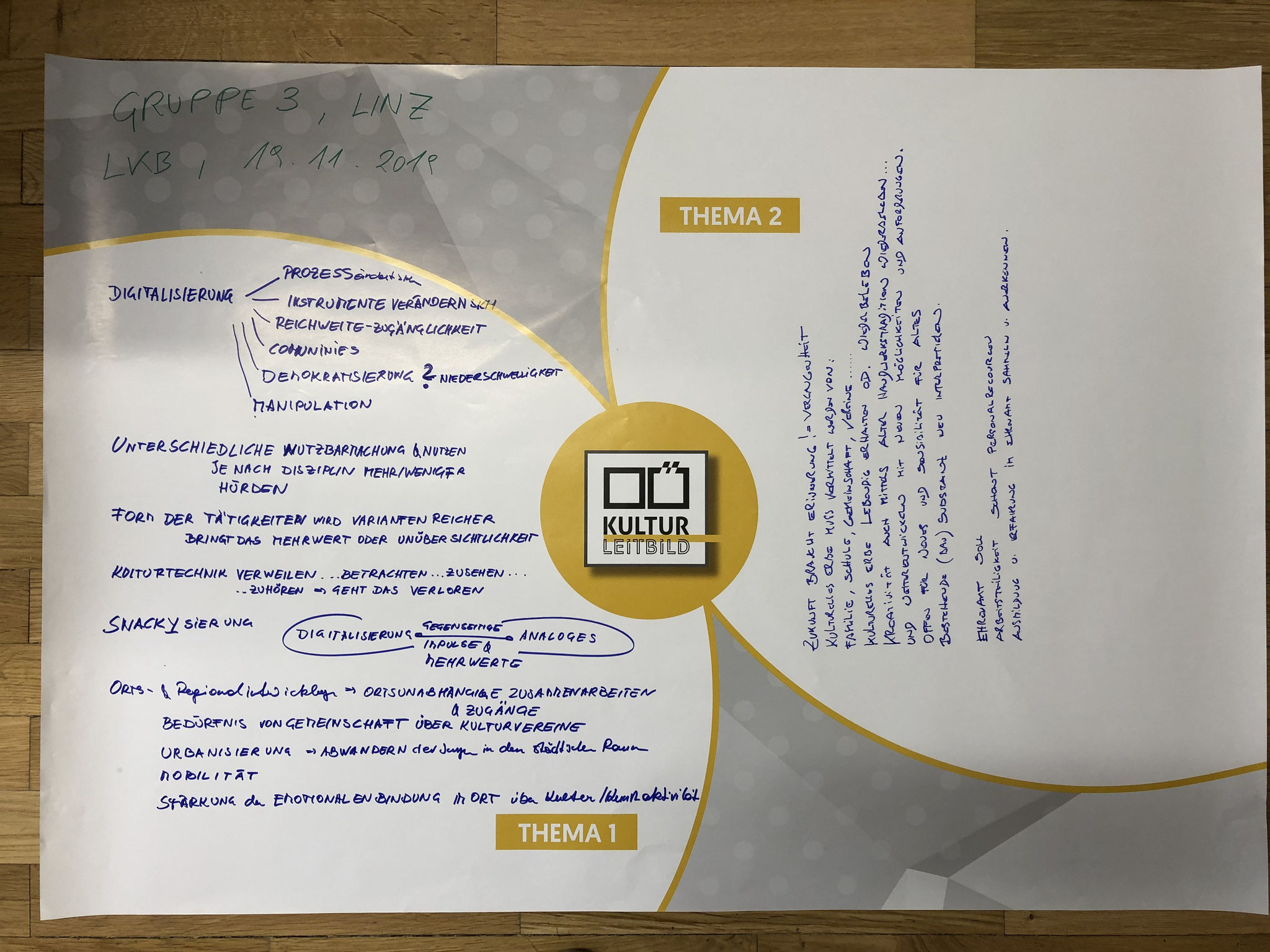 Die Mitglieder und Ersatzmitglieder des Landeskulturbeirats wurden vom Vorsitzenden Dr. Josef Stockinger am 19. November 2019 zu einer Diskussion zum neuen Kulturleitbild in die Redoutensäle eingeladen. Was den Ablauf dieser Diskussion betrifft, wurde das Format der regionalen Diskussionen grundsätzlich beibehalten, nur inhaltlich gab es eine Adaption, die den Kreis zur Auftaktveranstaltung in der OÖ. Landesbibliothek geschlossen hat.