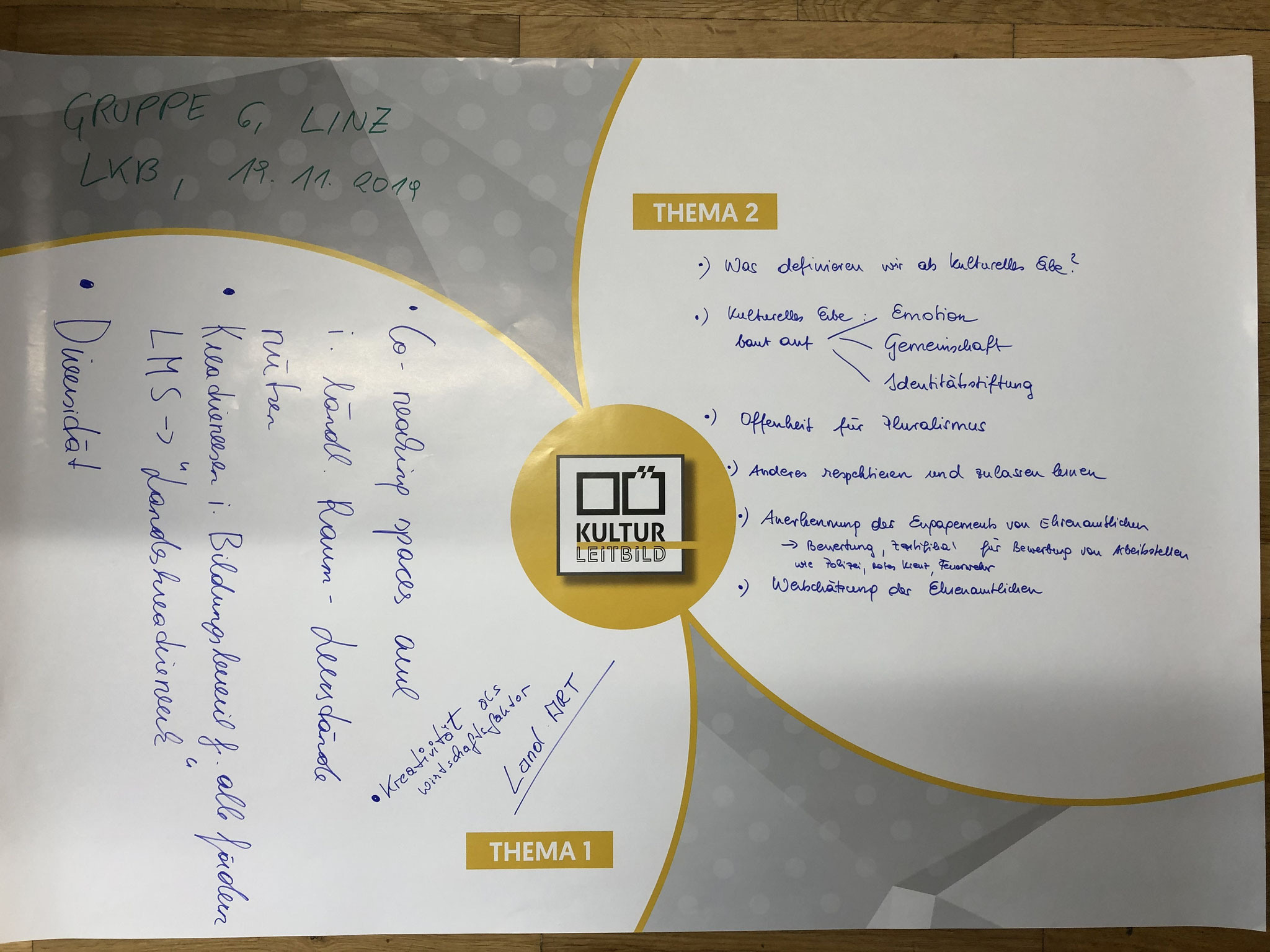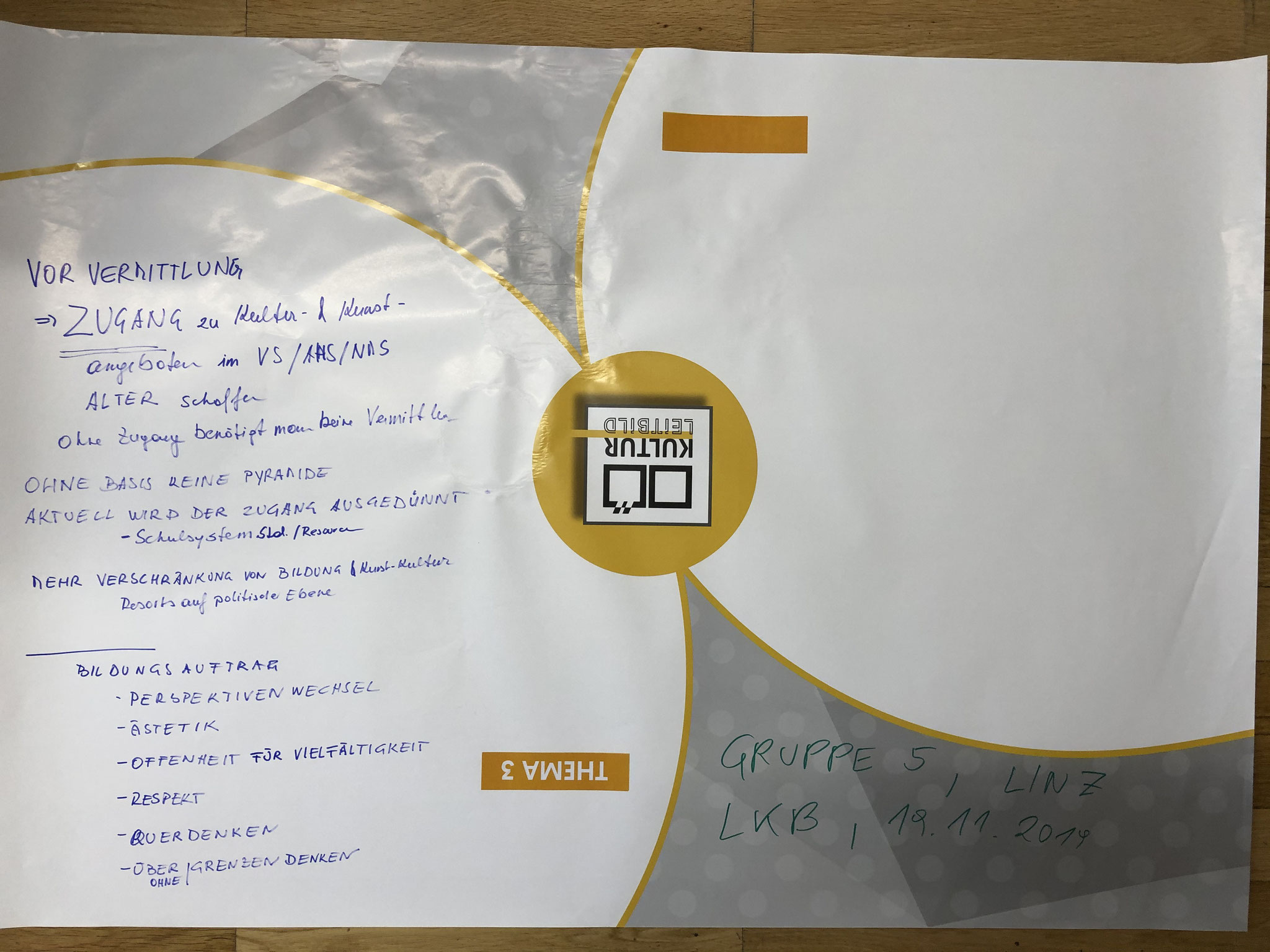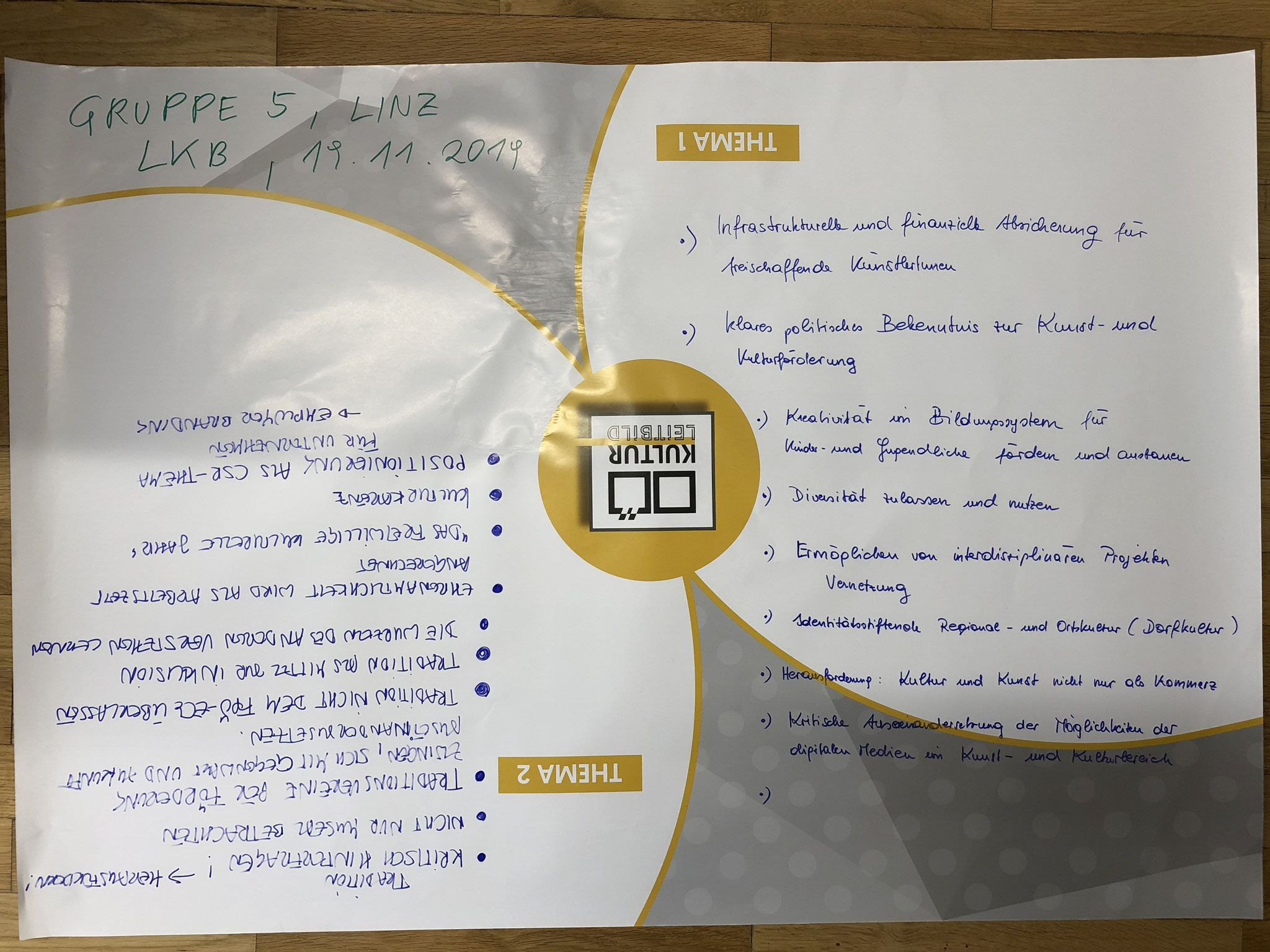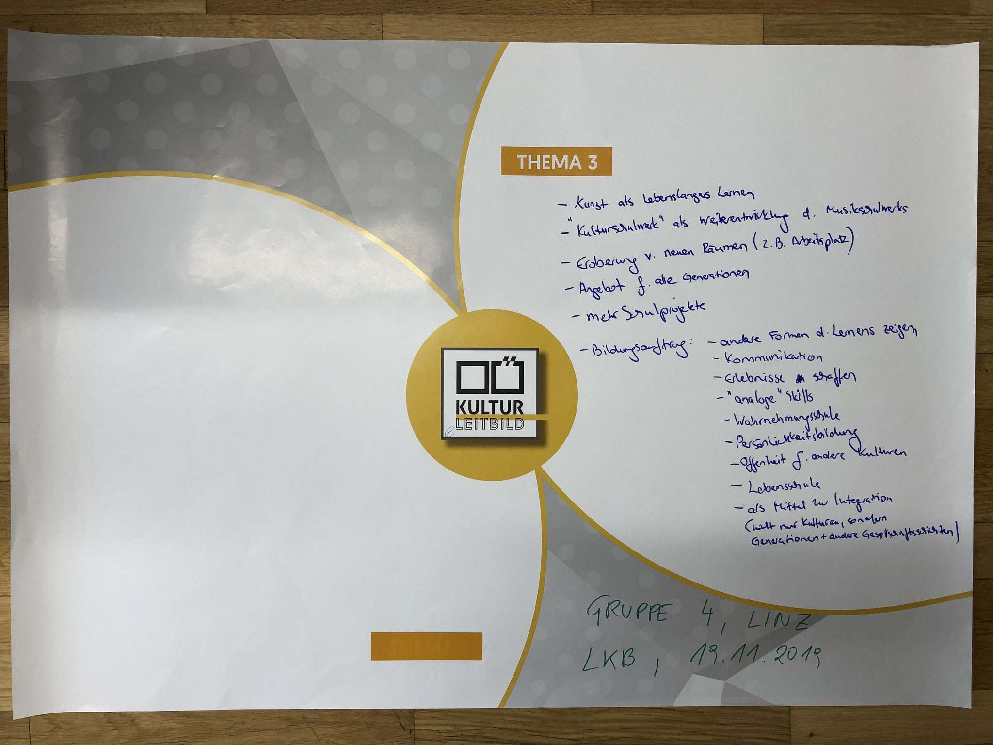 Die Mitglieder und Ersatzmitglieder des Landeskulturbeirats wurden vom Vorsitzenden Dr. Josef Stockinger am 19. November 2019 zu einer Diskussion zum neuen Kulturleitbild in die Redoutensäle eingeladen. Was den Ablauf dieser Diskussion betrifft, wurde das Format der regionalen Diskussionen grundsätzlich beibehalten, nur inhaltlich gab es eine Adaption, die den Kreis zur Auftaktveranstaltung in der OÖ. Landesbibliothek geschlossen hat.